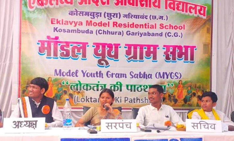 छत्तीसगढ़ के लिए बड़े गौरव के क्षण में, एकलव्य आदर्श आवासीय विद्यालय (EMRS), कोसमबुड़ा ने अपनी तरह की पहली ‘मॉडल यूथ ग्राम सभा’ (MYGS) प्रतियोगिता में राष्ट्रीय विजेता बनकर उभरने का गौरव प्राप्त किया है। पंचायती राज मंत्रालय आगामी 28 जनवरी 2026 को नई दिल्ली में आयोजित एक भव्य राष्ट्रीय पुरस्कार समारोह में छत्तीसगढ़ की इस विजेता टीम को औपचारिक रूप से सम्मानित करेगा।