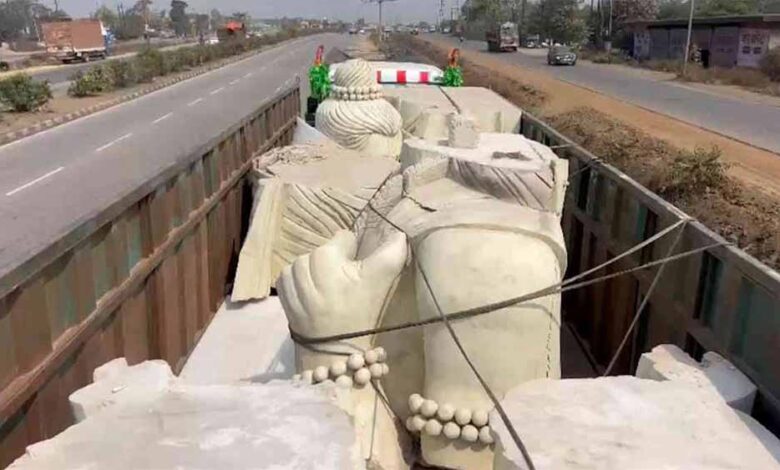 चंदखुरी स्थित कौशल्या माता मंदिर परिसर में स्थापना के लिए ग्वालियर से भगवान श्रीराम की 51 फीट ऊंची वनवासी प्रतिमा रायपुर पहुंच गई है. प्रतिमा रीजनल आर्ट एंड क्राफ्ट डिजाइन सेंटर में प्रसिद्ध मूर्तिकार दीपक विश्वकर्मा ने इस मूर्ति का निर्माण किया है. प्रभु श्रीराम की नई प्रतिमा की स्थापना कांग्रेस शासनकाल में कौशल्या धाम परिसर में वर्ष 2021 में 51 फीट ऊंची श्रीराम की प्रतिमा के स्थान पर की जाएगी.