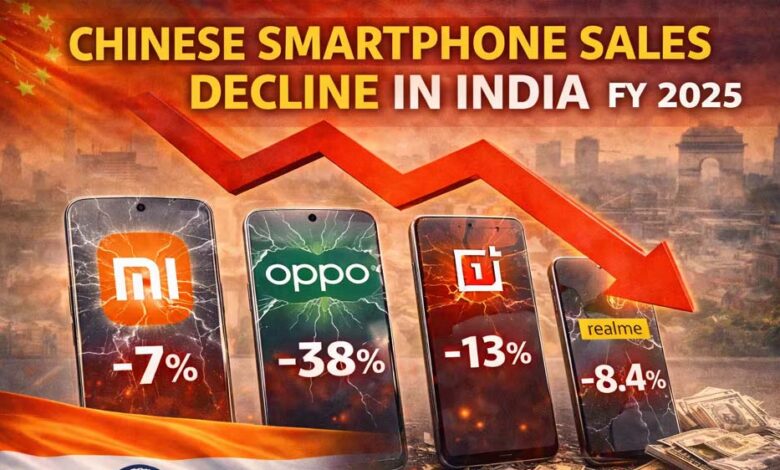 भारत में चीनी स्मार्टफोन कंपनियों की बिक्री में भारी गिरावट, 10 साल में पहली बार आई धड़ाम