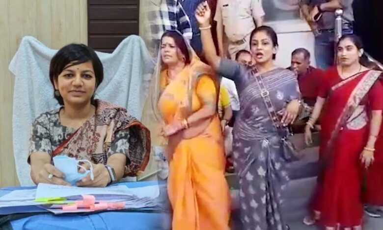 IAS आकांक्षा राणा की गिरफ्तारी जैसी स्थिति, होर्डिंग हटाने पर नेताओं ने गेट पर कब्जा जमा दिया