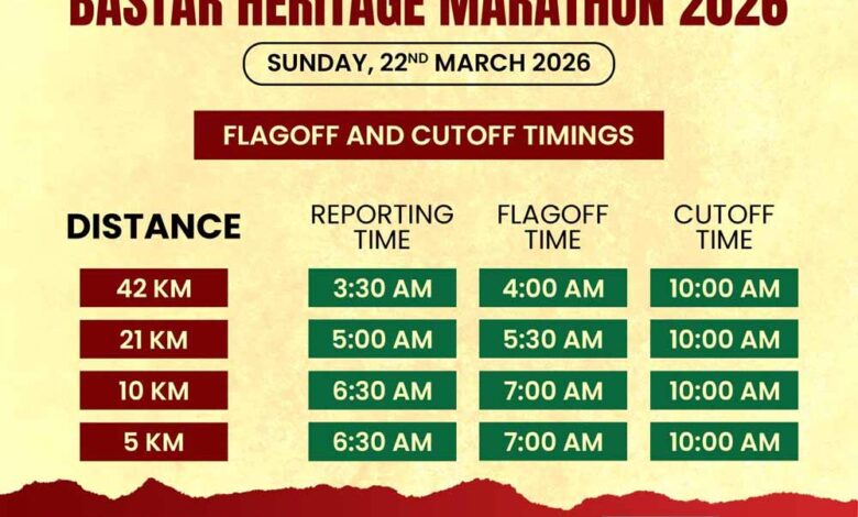 छत्तीसगढ़ में खेलों को बढ़ावा देने और बस्तर की सांस्कृतिक विरासत को राष्ट्रीय मंच पर लाने के उद्देश्य से “बस्तर हेरिटेज मैराथन 2026” का आयोजन किया जा रहा है। मुख्यमंत्री विष्णु देव साय के नेतृत्व में यह आयोजन राज्य के लिए एक ऐतिहासिक पहल माना जा रहा है। 22 मार्च को आयोजित होने वाली यह मैराथन जगदलपुर के लालबाग मैदान से प्रारंभ होकर चित्रकोट जलप्रपात तक पहुंचेगी। यह रूट प्रतिभागियों को बस्तर के प्राकृतिक और ऐतिहासिक सौंदर्य से रूबरू कराएगा।