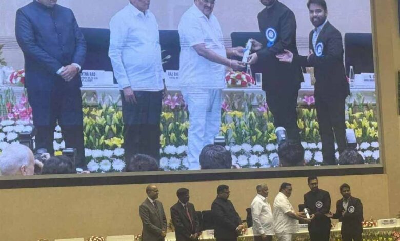 राष्ट्रपति श्रीमती द्रौपदी मुर्मू के हाथों कलेक्टर श्री विनय कुमार लंगेह ने पुरस्कार ग्रहण किया