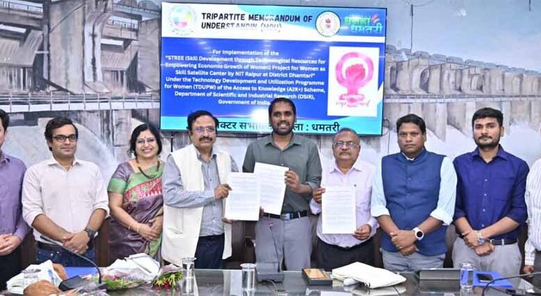 ग्रामीण महिलाओं के आर्थिक एवं सामाजिक सशक्तिकरण की दिशा में धमतरी जिले में एक ऐतिहासिक पहल की गई है। कलेक्टोरेट परिसर में नेशनल इंस्टीट्यूट ऑफ टेक्नोलॉजी (NIT) रायपुर, जिला प्रशासन धमतरी और बीआरपी शासकीय पॉलिटेक्निक कॉलेज के बीच ‘STREE’ (Skill Development through Technological Resources for Empowering Economic Growth of Women) परियोजना के सफल क्रियान्वयन हेतु त्रिपक्षीय समझौता ज्ञापन (MoU) पर हस्ताक्षर किए गए।