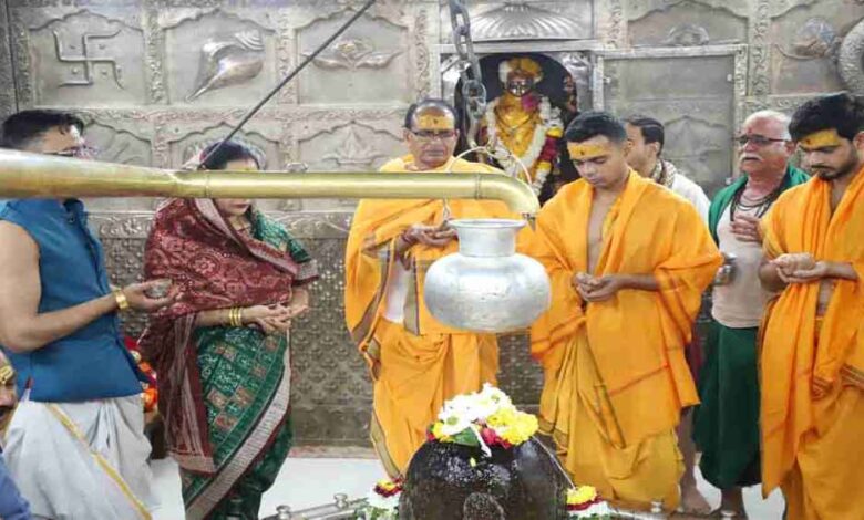 मध्य प्रदेश के पूर्व सीएम और केंद्रीय कृषि मंत्री शिवराज सिंह चौहान का काफिला हवाई पट्टी से सीधे महाकाल मंदिर पहुंचा। उन्होंने सपरिवार महाकालेश्वर मंदिर पहुंच कर गर्भ गृह में पूजा अर्चना की। इसके बाद नंदी हॉल में बैठकर ध्यान लगाया। प्रशांत पुजारी और यश पुजारी ने पूजा सम्पन्न करवाई। मंदिर प्रबंध समिति की ओर से प्रशासक प्रथम कौशिक की ओर से शिवराज सिंह चौहान का सम्मान किया गया।