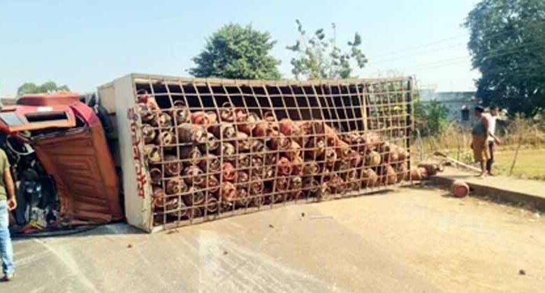 बालोद में हादसा: गैस सिलेंडर से भरा ट्रक पलटा, ट्रक चालक की मौत
