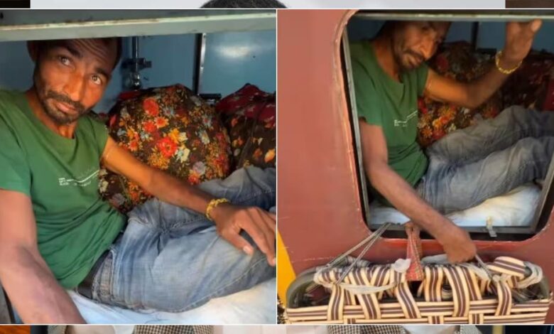 भारत में त्योहारों का सीजन शुरू होते ही सोशल मीडिया पर ट्रेनों की भीड़ के वीडियो छा जाते हैं. लेकिन इस बार जो वीडियो वायरल हो रहा है, उसने सभी को हैरान कर दिया है. इस वीडियो में एक शख्स ट्रेन के वॉशरूम को ही अपना ‘मेकशिफ्ट बेडरूम’ बना लेता है. वह वॉशरूम के अंदर बिछावन लगाकर आराम से लेटा नजर आता है. यह नज़ारा इतना अजीब और चौंकाने वाला है कि देखने वाले यकीन नहीं कर पा रहे कि कोई ट्रेन के वॉशरूम में ऐसे भी सफर कर सकता है.