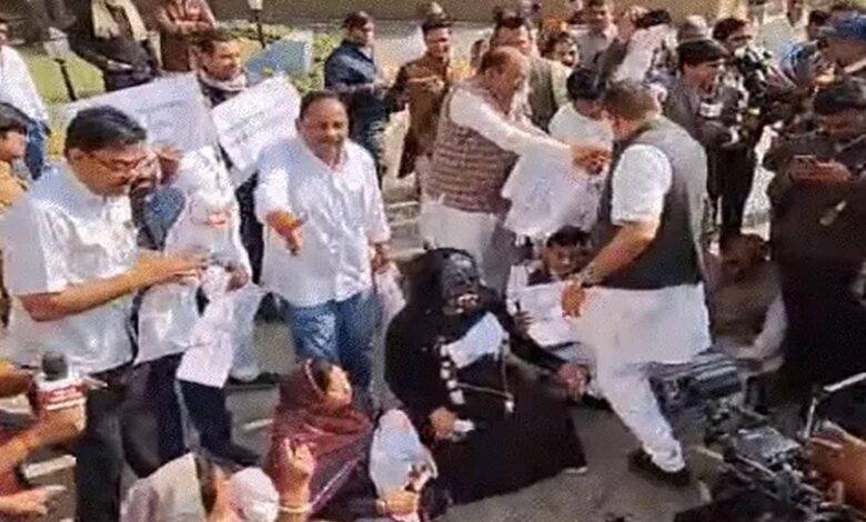 शीतकालीन सत्र के पहले दिन विधानसभा में कफ सिरप कांड का विरोध, विपक्षी विधायक बच्चों के पुतले लेकर पहुंचे
