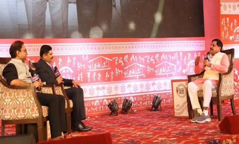 मुख्यमंत्री डॉ. यादव मंगलवार को कुशाभाऊ ठाकरे सभागार में एक निजी टीवी चैनल द्वारा आयोजित कार्यक्रम में 'जनजातीय प्रज्ञा' कार्यक्रम को संबोधित कर रहे थे। मुख्यमंत्री डॉ. यादव से चैनल के मैनेजिंग एडीटर मध्यप्रदेश  प्रवीण दुबे और मैनेजिंग एडिटर छत्तीसगढ़  विश्वेश ठाकुर ने बातचीत की।